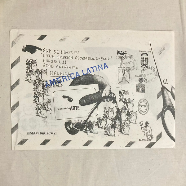Envelope has some minor creasing and edgewear. Sheets are largely Near fine with a couple showing light creasing. "Escrita #3" has toning to covers. "Editions & Communications marginales d'Amerique Latine" is folded as issued and near fine.