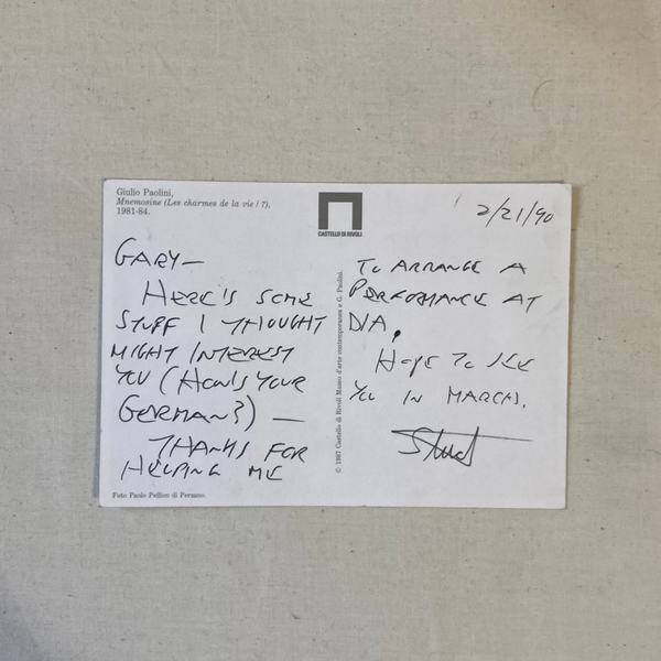 Accompanied by the program's invitation and an unmailed postcard inscribed
